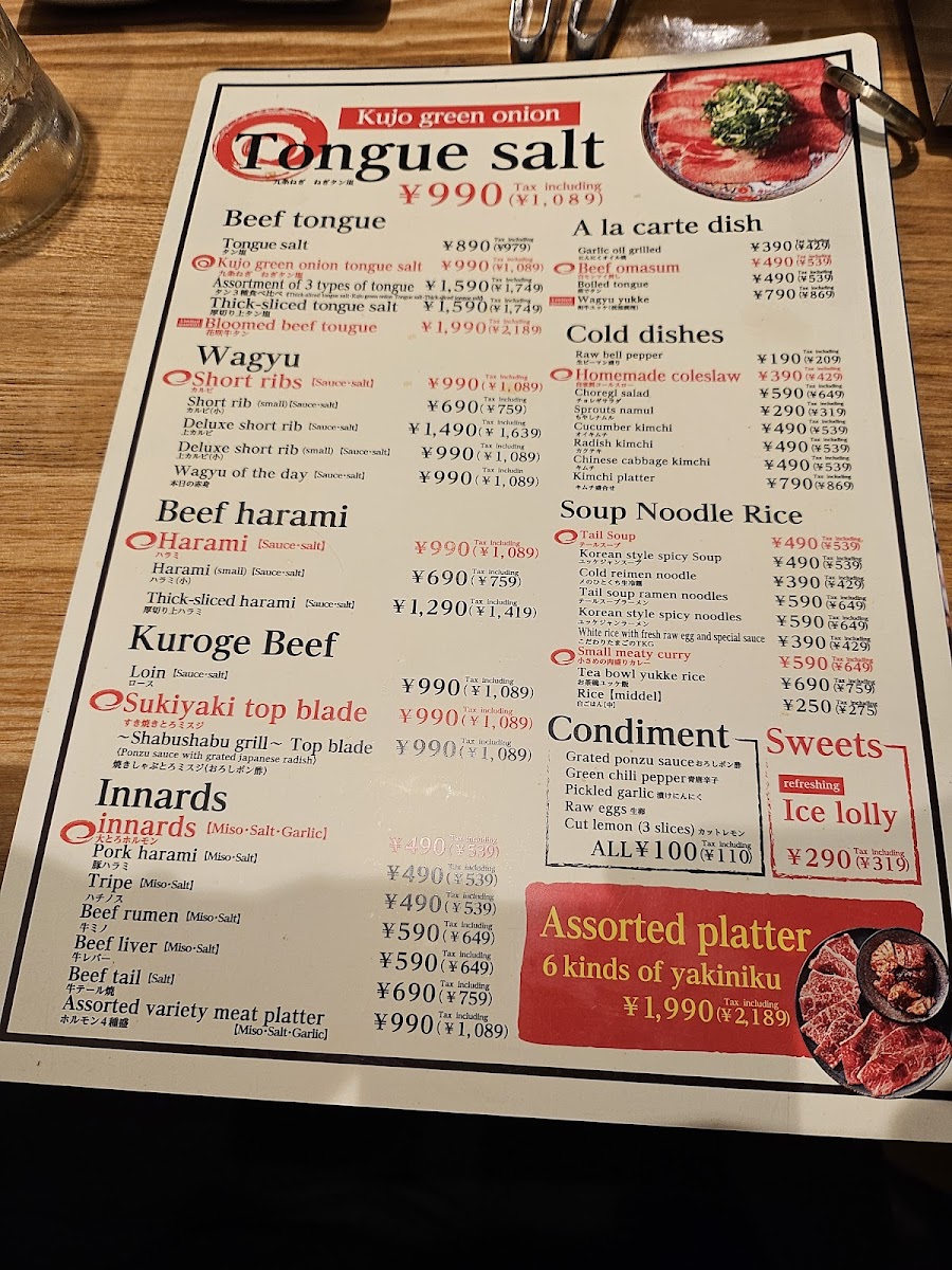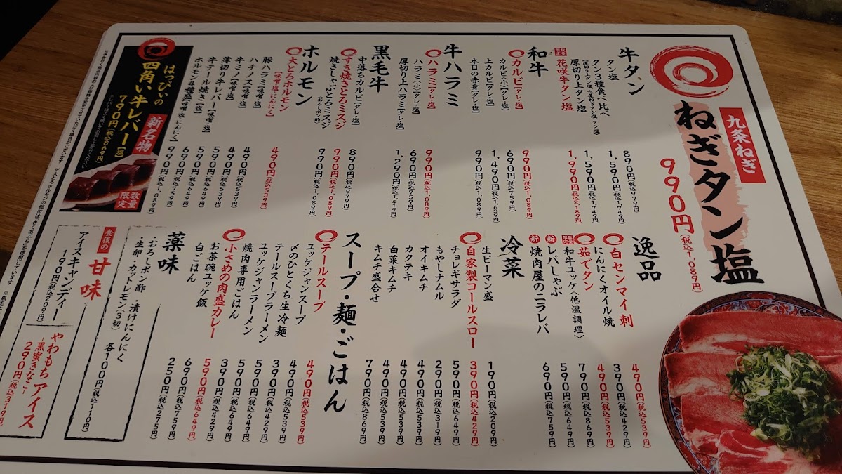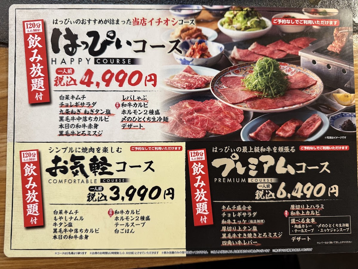 The menu at Yakiniku Happy offers a thoughtfully curated selection typical of a Korean barbecue restaurant, designed to highlight the rich flavors of high-quality Japanese beef and traditional accompaniments. You'll find everything from tender beef tongue and Wagyu cuts to carefully prepared sides and seasonal dishes, inviting diners to enjoy a relaxed yet attentive grilling experience.